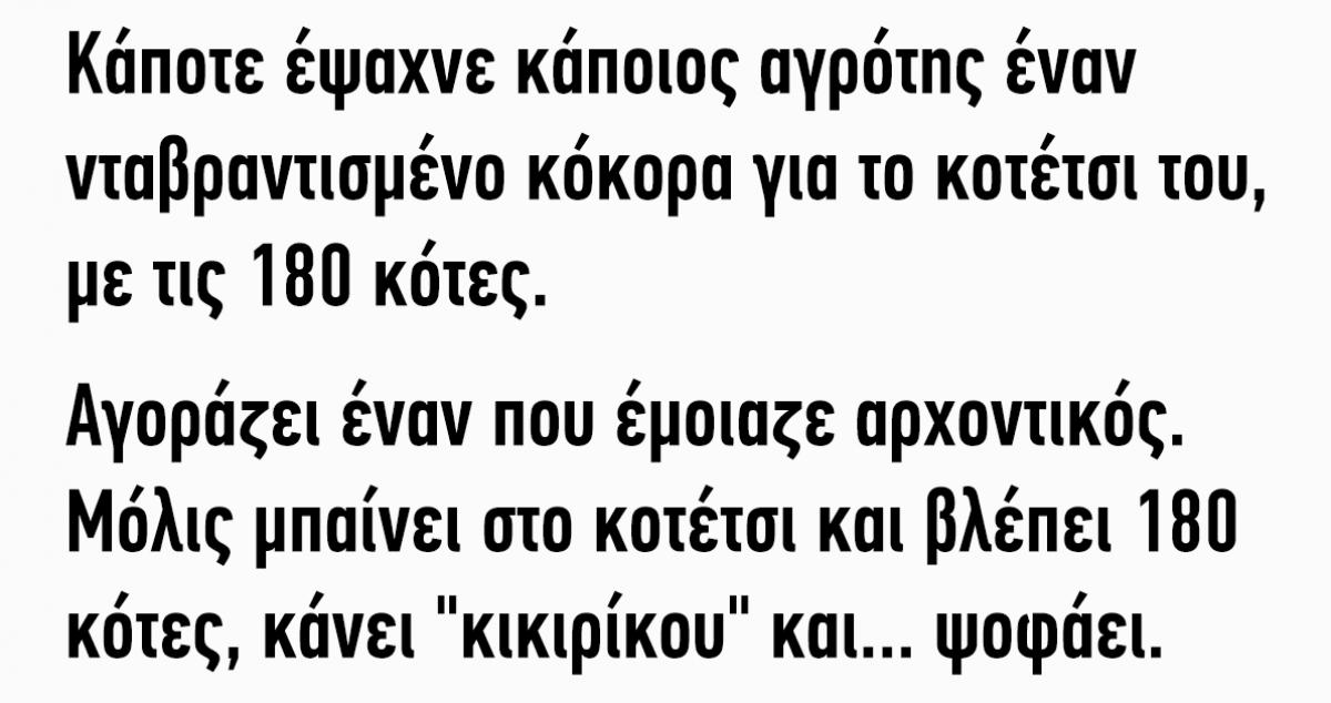 Κάποτε έψαχνε κάποιος αγρότης έναν νταβραντισμένο κόκορα